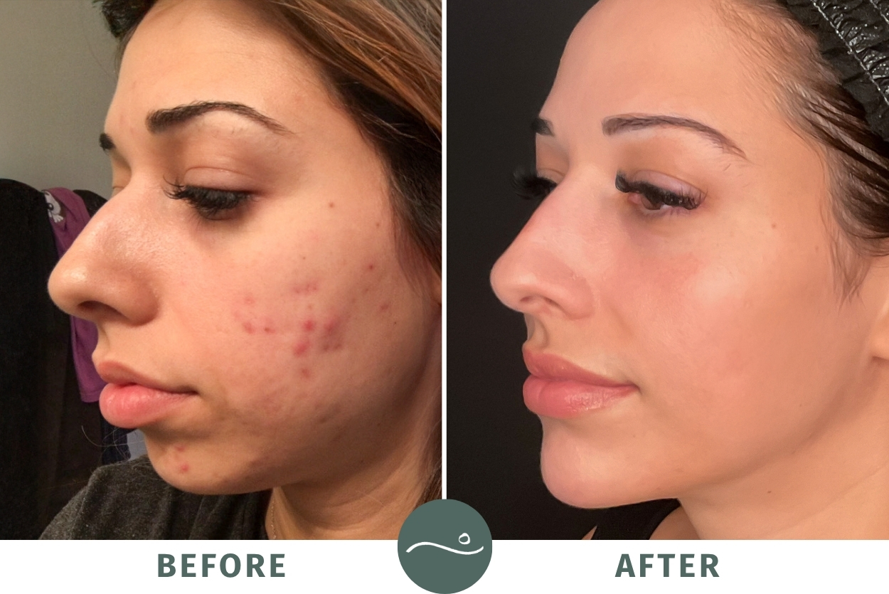 Sachi’s journey began with a combination of BroadBand Light (BBL) Photofacial and Moxi laser treatment, a pairing designed to address multiple layers of her skin concerns at once. BBL works to reduce redness, sun damage, and brown pigmentation, while Moxi helps improve overall tone, early texture irregularities, and skin clarity. Together, they effectively treat acne scars, creating a brighter, more even foundation and setting the stage for deeper skin renewal.